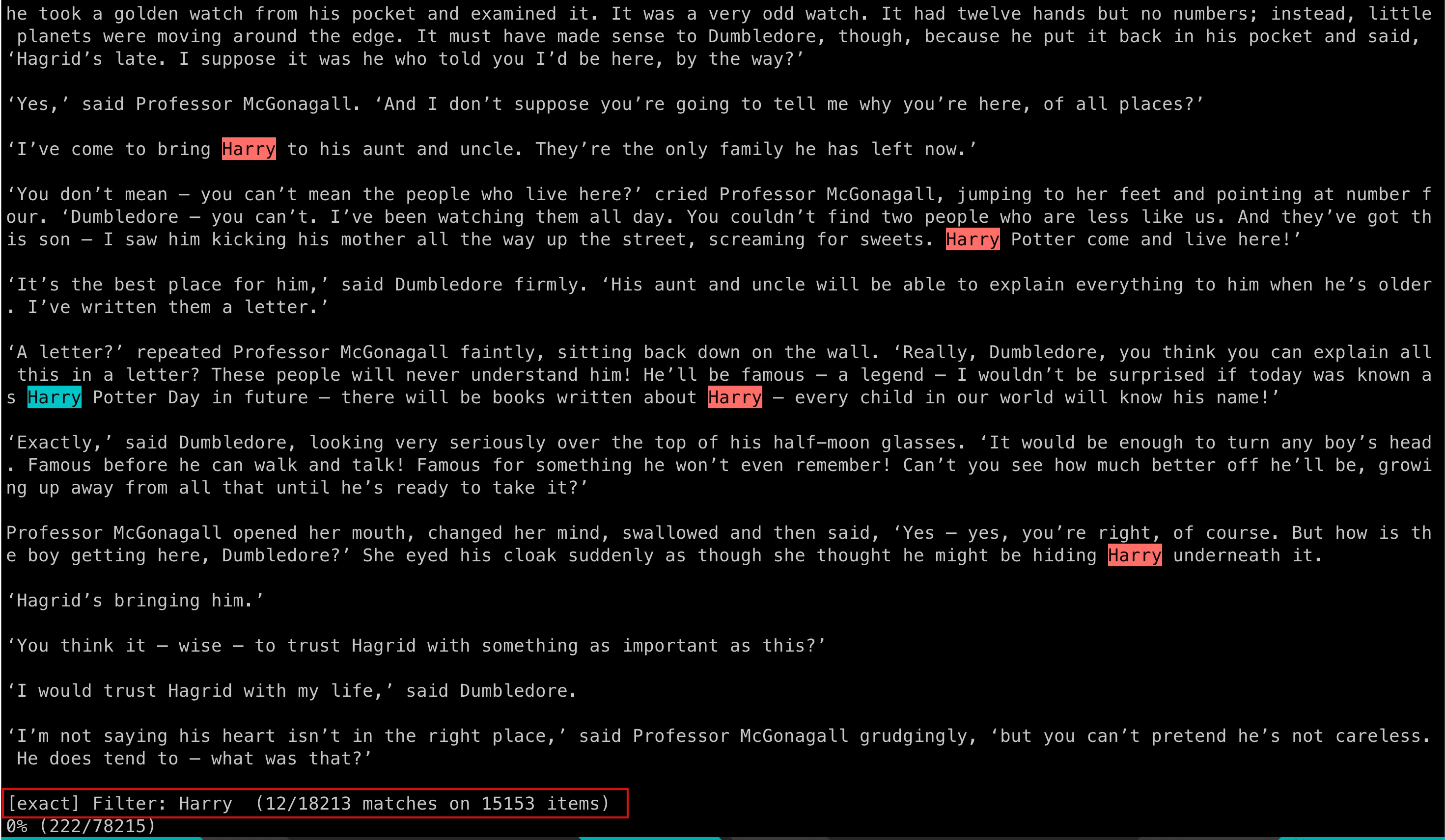 text you’ve paged through up to the point of quitting persist in your terminal output. And use --ignore-case/-i to